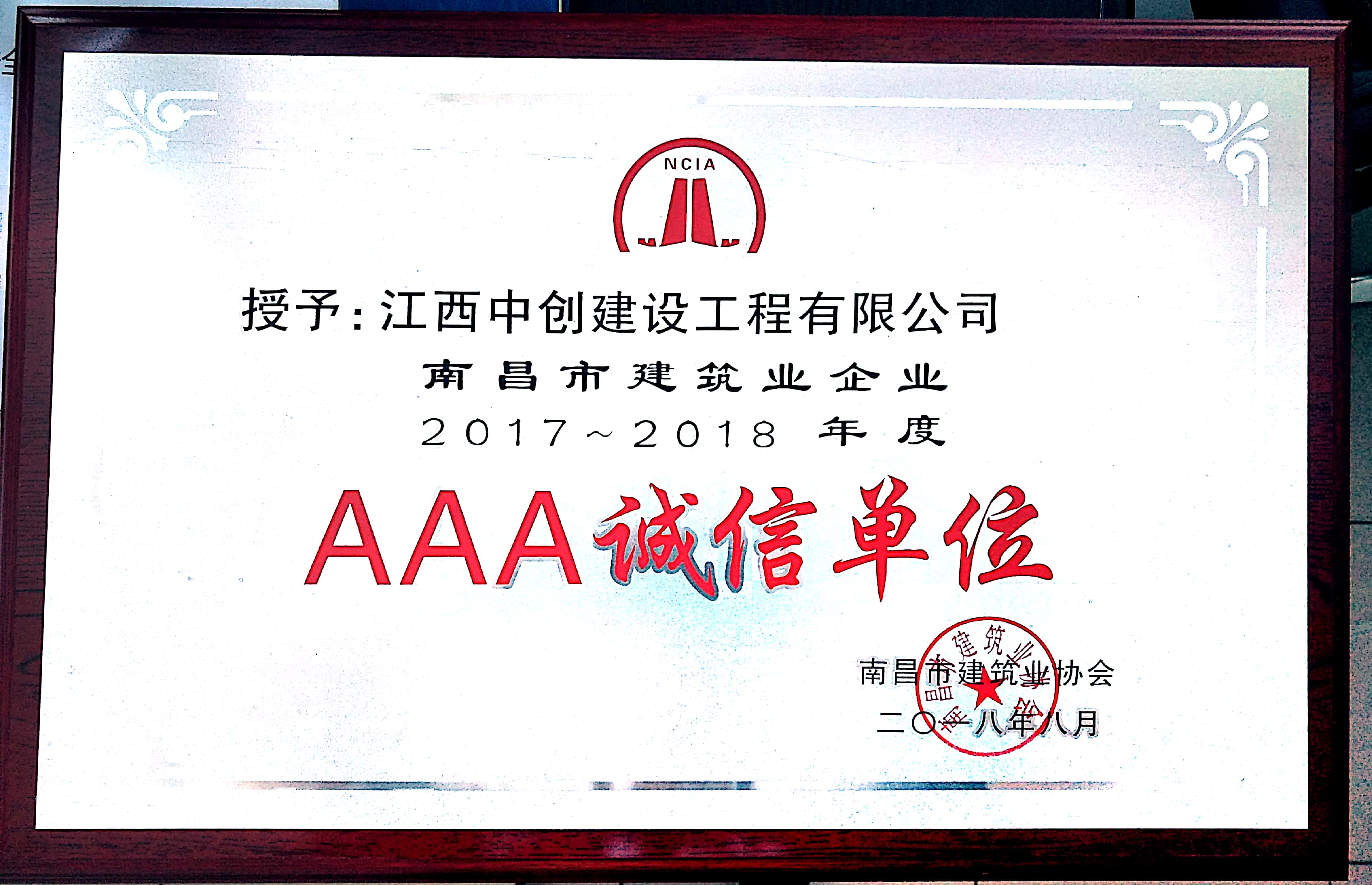 南昌市建筑業(yè)企業(yè)2017-2018年度AAA誠(chéng)信單位